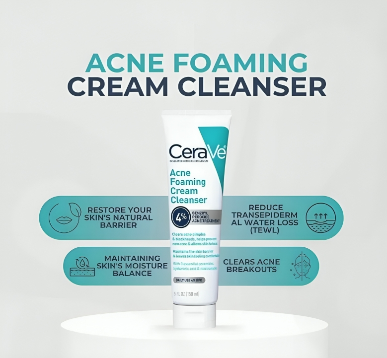 CeraVe Acne Foaming Cream Cleanser | Deep Clean & Hydrating Blemish Care